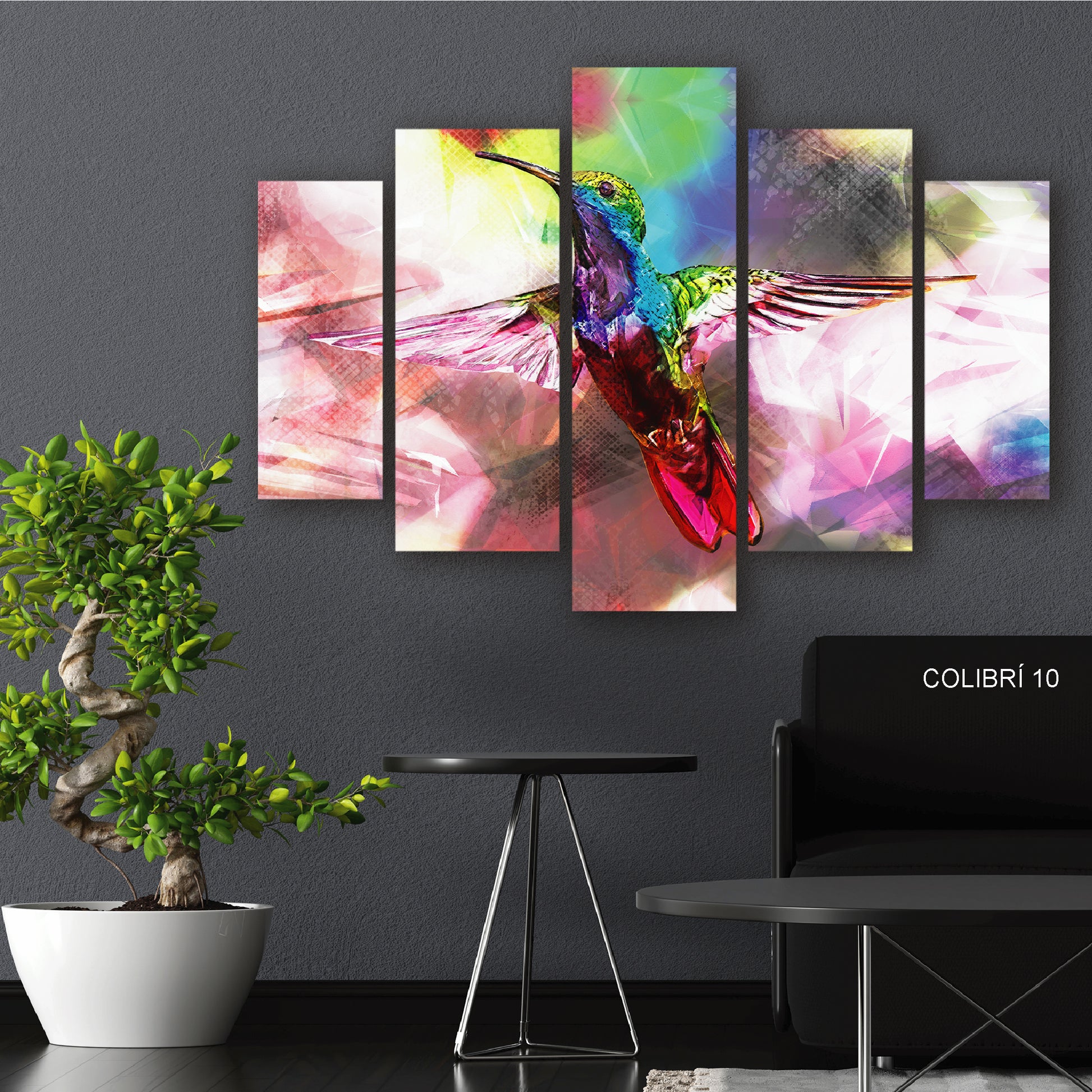 Subcoleccion Cuadros De Colibri/ Nombre: Cuadro Kaleidoscopio Alado: Colibrí en Vuelo de Contraste