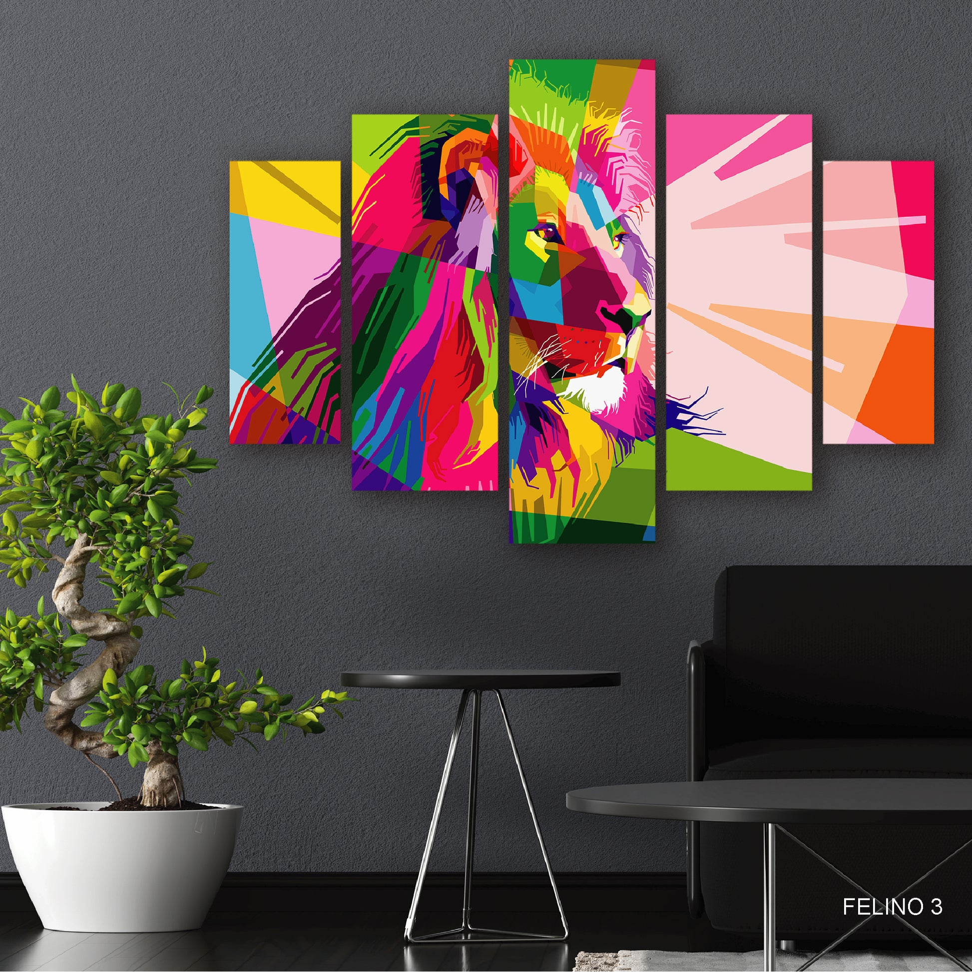Subcoleccion Cuadros De Felinos/ Nombre: Cuadro Instante Cromático: León Distraído en Color Vibrante