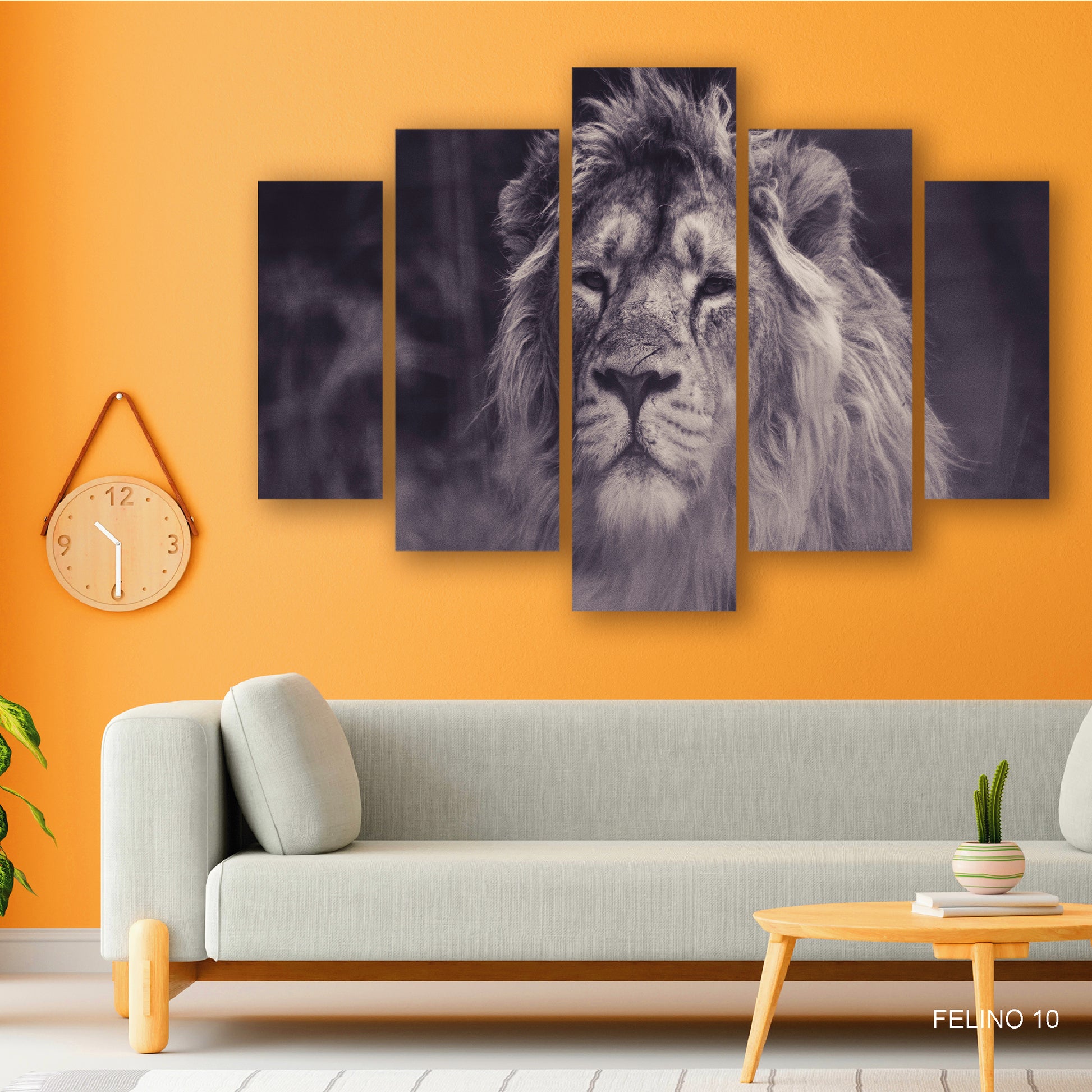 Subcoleccion Cuadros De Felinos/ Nombre: Cuadro Majestad Grisácea: Retrato de León en Contraste Sereno