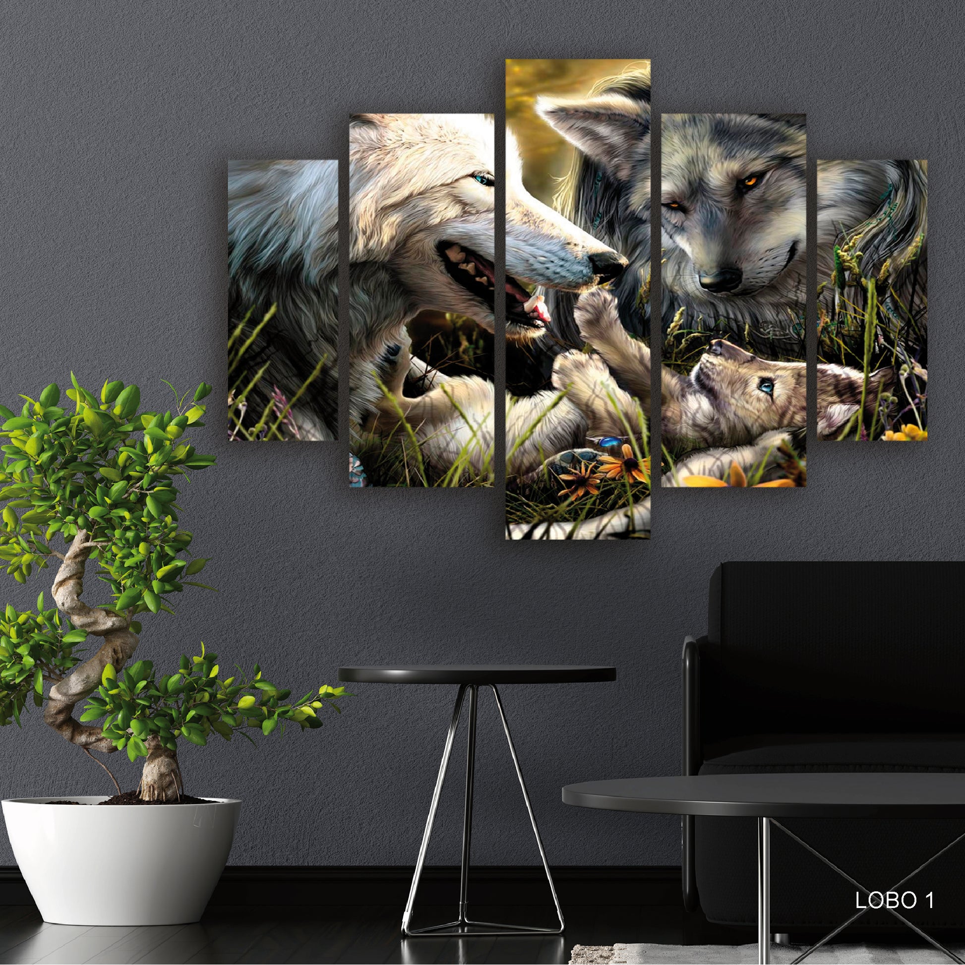 Subcoleccion Cuadros De Lobos/ Nombre: Cuadro Refugio Familiar: Lobos Padres y Cachorro en Nido