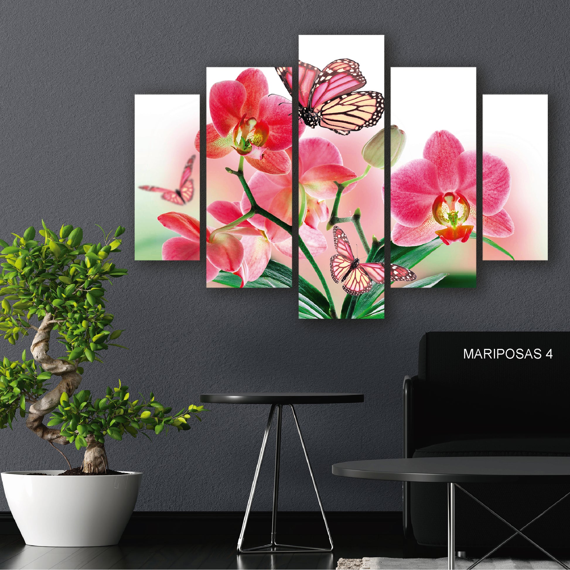 Subcoleccion Cuadros De Mariposas/ Nombre: Cuadro Jardín Rosado: Mariposas y Flores en Sinfonía de Rosas